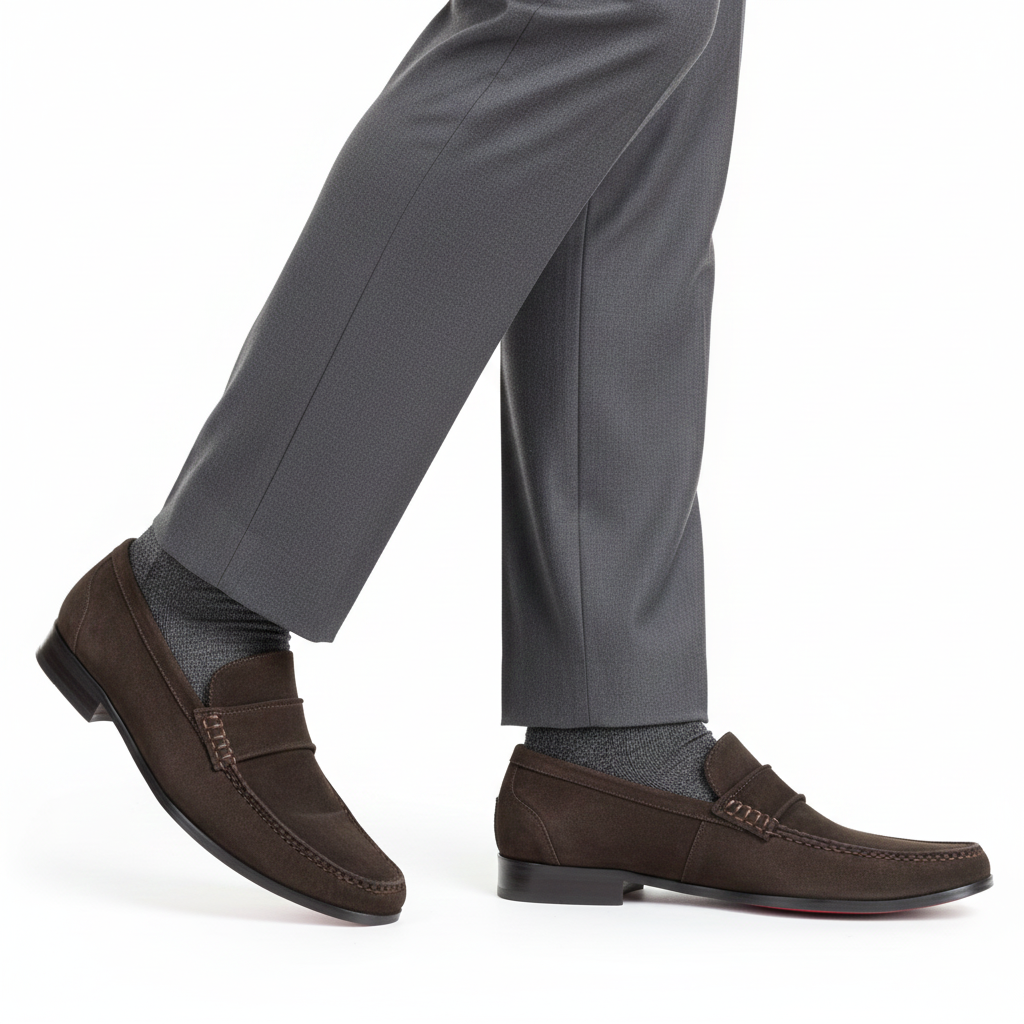 Heritage suede moccasin styling with visible stitching and soft leather construction. Simplicity meets elegance in a design built for relaxed refinement.