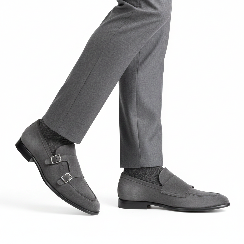 Elegant & Artistic. Classic monk‑strap styling recreated in soft suede. Combining the relaxed texture of suede with a traditional buckle design, these loafers redefine polished confidence.